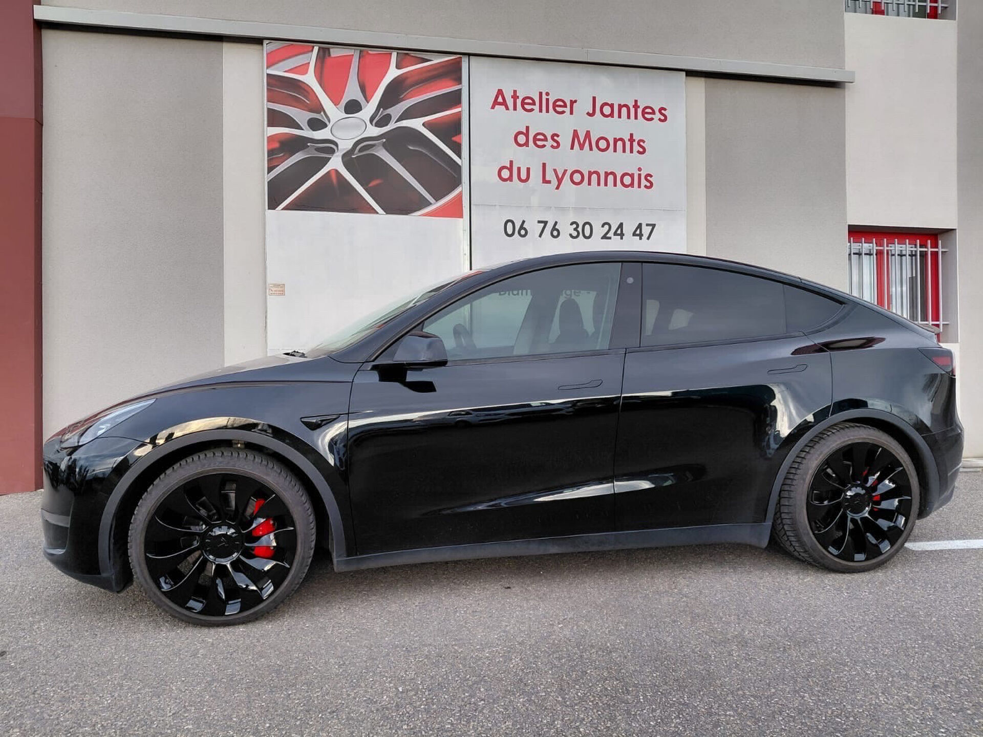 Un client de Lyon est venu dans notre atelier pour changer la teinte des jantes de sa Tesla Model Y. Le client a voulu passer ces jantes en noir brillant